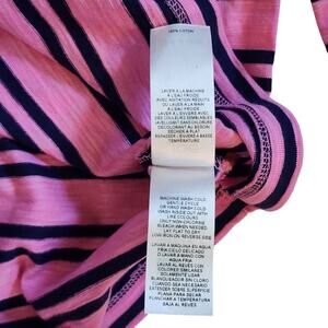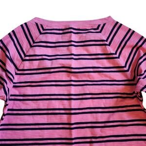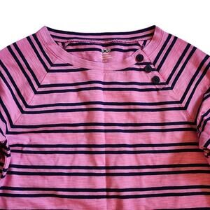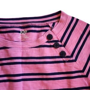 Joe Fresh Womens Knit Top Size M Pink Navy 3/4 Raglan Sleeve Button Shoulder