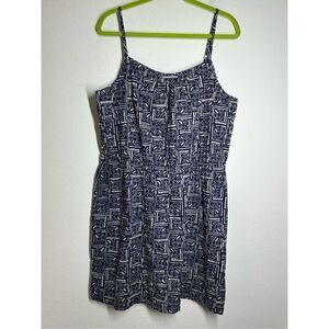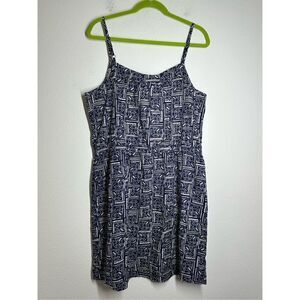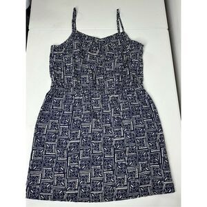 Joe Fresh Women’s Shift Dress Sz L Spaghetti Strap Pockets Mini Drawstring Blue