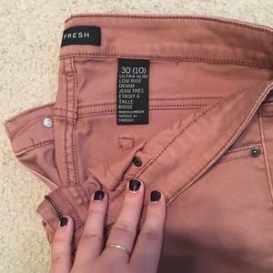 Size 10 skinny low rise in dusty pink. A re-posh. Never worn by me. In great condition.