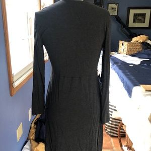 Comfortable for everyday wear, this size Medium Joe Fresh dress is knee-length, stretchy, long sleeved and gray.