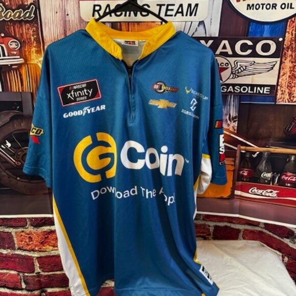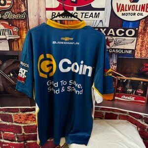 The product is a Joe Graf Jr SS-Green Light Racing Men's Pit Crew Shirt in size XL. It is an officially licensed NASCAR merchandise from Epic Racewear, designed in blue color. The shirt is suitable for male fans of Joe Graf Jr and his team, SS-Green Light Racing, in the auto racing sport. The high-quality shirt is perfect for showing support for the driver and team during races or as a collector's item for NASCAR enthusiasts.