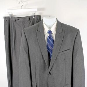 Joe Joseph Abboud Polyester Gray Herringbone 2 Button 2 Piece Suit 42R 35/31 Pea