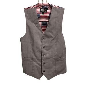 Joe Joseph Abboud Wool Vest American Flag Back Gray Size 34 Small