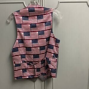 Excellent condition mens wool vest, 5 button design with an American flag graphic print on the back