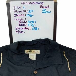 Joe Marlin Black Embroidered Hawaiian Short Sleeve Shirt Size L Bamboo Vacation