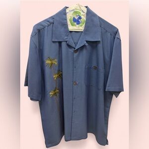 Joe Marlin Blue Hawaiian shirt with embroidered palm tree design