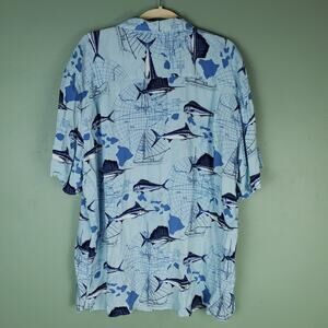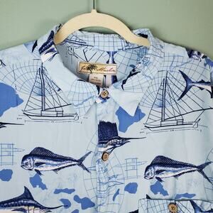 Joe Marlin Fish Sailboat Hawaiian Blue Button Up Shirt Size XXL