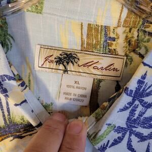 Joe Marlin Hawaiian Aloha Shirt Men's Size XL Blue Palm Trees Tiki Beach Luau