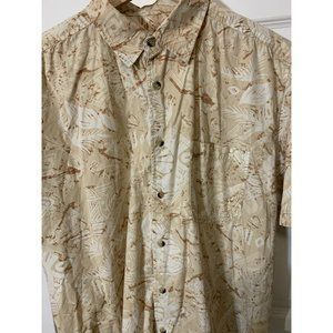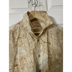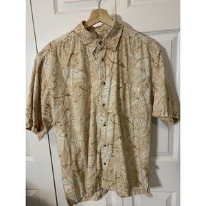Joe Marlin Mens Hawaii Style Print Short Sleeve Sz L Button Shirt Tan