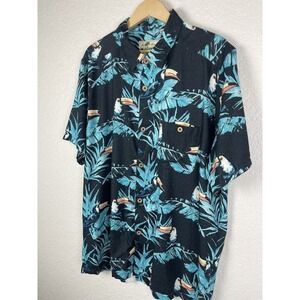 Joe Marlin Mens Hawaiian Shirt Size Large Short Sleeve Toucan Tropical Beach