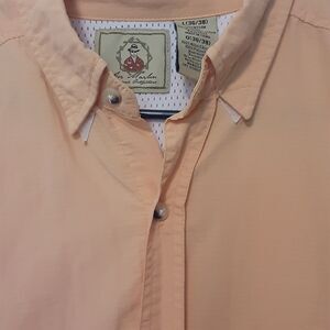 This Joe Marlin button-up shirt is perfect for any outdoor activity. The vented short sleeves and breathable material will keep you cool and comfortable, while the solid orange color and collared neckline give it a stylish look. The shirt is made of a polyester and nylon blend, making it durable and perfect for all seasons.