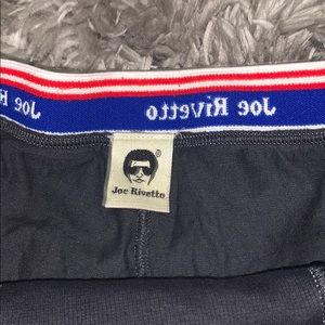 Joe Rivetto trunks. Graphic on front. Logo waistband. Small pocket on the back. Very nice trunks. In great preowned conditions. Very sexy.