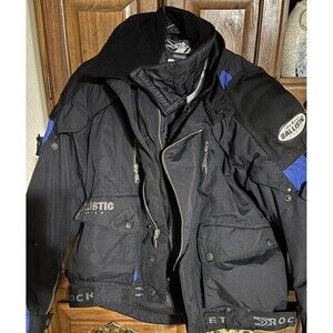 The Joe Rocket Phoenix Armoured Padded Motorcycle Jacket in men's medium is designed for those who ride in style and with protection. Made from durable polyester material, this jacket features visible Joe rocket Racing logos, a zipper closure, and comes in a sleek black color. With shoulder, back, and elbow armor included, this jacket is perfect for riders who enjoy racing and tracking on their motorcycles. It also includes convenient internal, chest, and coin pockets for added storage. Easy to care for with a hand wash only requirement, this jacket is a must-have for any motorcycle enthusiast looking for a reliable and stylish piece of protective gear. Please see all pictures some wear noted on buttons