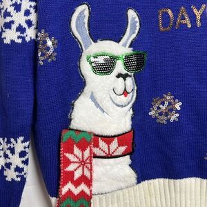 Joe boxer Blue Lama Holiday sequin ugly sweater -l