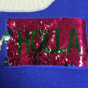 Sequins is reversible to say hola or lama