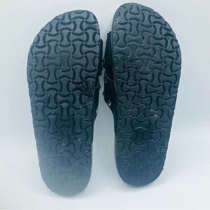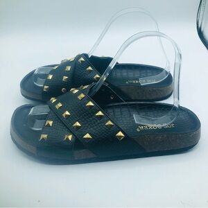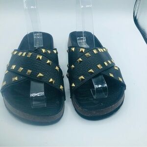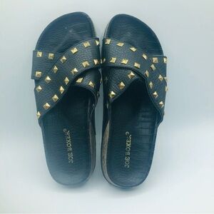 Joe boxer women's black leather slides with brass studs open so size 7.5 shoes are in excellent preowned condition.