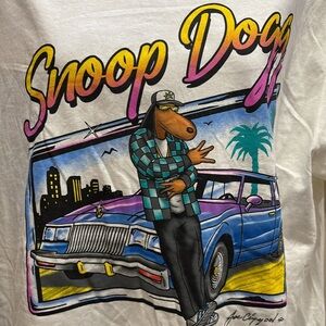 Bold Snoop Dogg design on a white tee. Perfect for casual wear.