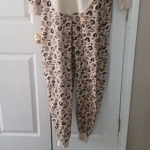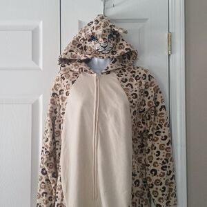 Joe Boxer Leopard print hooded onesie pajama coverall Sz XL EUC