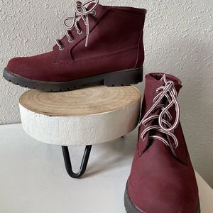 Great pair of maroon faux leather boots by Joe Boxer in excellent preowned condition.