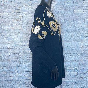 preowned, embellished abstract print with beads scoop neck has shoulder pads in great shape