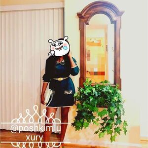 Very in style and beautiful, if you are petite (5'2) like me this will serve as a dress but if you are tall this will be perfect too to wear leggings. loose thread around the neck which is not that noticeable apart from that every other thing is perfect. Dress does have shoulder pad it's your choice to keep it or take it off. Worn out a few times. Belt not Included.