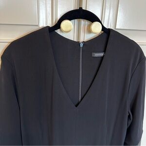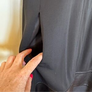 Joeffer Caoc - Canadian Designer Womens Black Cocktail Formal Dress Lagenlook Style V Neck 3/4 Sleeve Lambskin Trim. Beautifully Made. LBD. Zippered pockets on front.