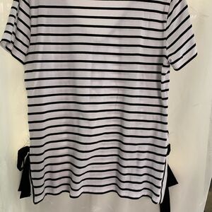 Joe fresh blouse/t-shirt white black stripes medium black ties on the bottom of both sides.
