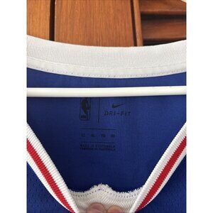 The product is a men's XL Philadelphia 76ers Nike Dri-Fit Swingman jersey featuring player Joel Embiid. This officially licensed NBA jersey in blue is designed for regular season basketball fans and is a perfect addition to any sports memorabilia collection. Made in Guatemala, this high-quality jersey is a must-have for fans of the Philadelphia 76ers and basketball enthusiasts alike.