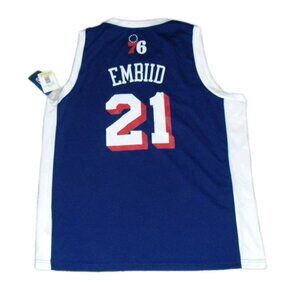 Brand New Mens Adult Sz. XXL 2X Joel Embiid Philadelphia 76ers Jersey. It measures from top of collar to bottom of jersey is 34 inches and from armpit to armpit is 27 inches. Made of Polyester material.