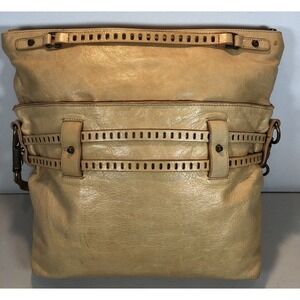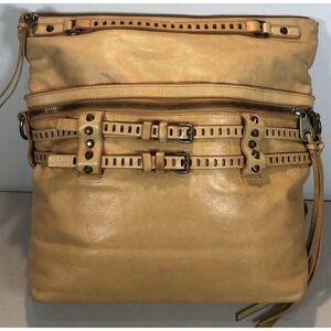 Joelle Hawkens Victory Folder Tan Leather Satchel Convertible Bag Purse READ