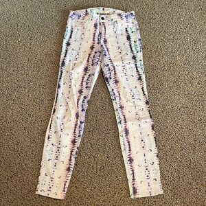 Fun!!! Bleached jeans with button and zipper fly. 5 pockets. Very soft and stretchy.