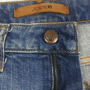 Joe's Blue Medium Wash Faded Distressed Five Pocket Mid Rise Raw Hem Jean Short