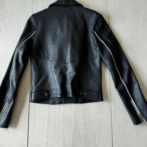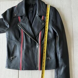 Joe’s Collection Moto Black Leather Jacket Red White Piping Size S