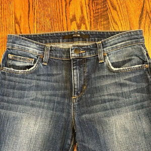 Joe’s Colletti medium wash raw hem lightly distressed 4-pocket skinny jeans. 28