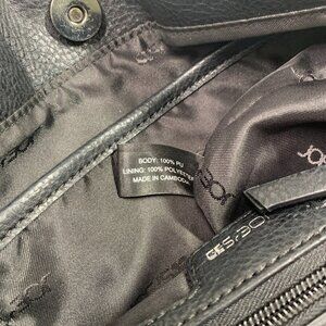 A medium size convertible crossbody bag from Joe's Jeans in black pebble grain faux leather with dark silver hardware. Motorcycle vibes with zippers diagonally across the front exterior which open to lined pockets. One zip pocket on the back. The crossbody strap detaches with dog clips and the bag can be carried just with the two metal bracelet style ring handles. Very good preowned condition, clean inside and out, light wear to the faux leather at the side of the bag as shown. See photos for more details. Happy to answer any questions!
