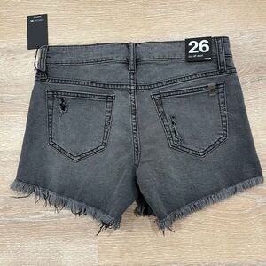 Joe's, Modern, Cut-off, Denim, Cotton Blend, Distressed, Zip Fly, Mid-Rise, Ethical, Fall, Summer, Spring, Joe's Cut-off Shorts Women's 26 Black Denim Distressed Mid-Rise Zip Fly Stretch.