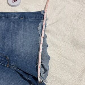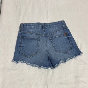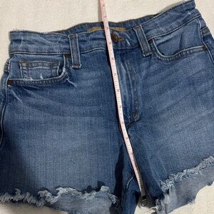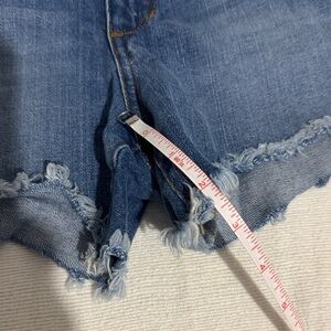 Stylish denim shorts with a frayed hem. Perfect for casual outings. Comfortable and trendy.