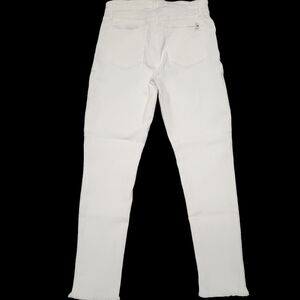 Elevate your wardrobe with these Joe's Flawless High Rise Skinny Ankle Jeans for women. The white denim fabric is made of a blend of spandex, lyocell, cotton, and T-400, providing ultimate comfort and stretch. It features a 5-pocket design with a zip closure and a high rise waist of 30 inches, making it perfect for any casual occasion. The extra-slim fit with a 27-inch inseam and solid pattern creates a stylish and modern look that complements any outfit.
