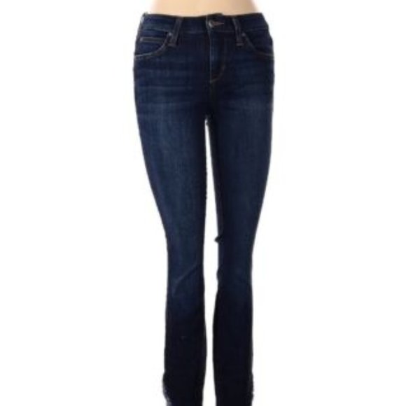 Joe's Flawless The Icon Mid Rise Skinny Ankle Jeans Waist 24 Dark Wash Fringe