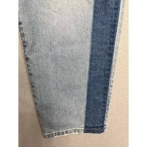 This high-rise, straight jean falls just above the ankle and is cut from a light washed denim with patchwork along the legs.