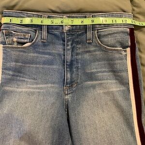 Joe’s High Rise Skinny Ankle. Style: “The Charlie”. Maroon&White Side Stripe/W25
