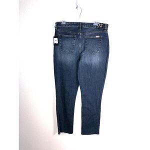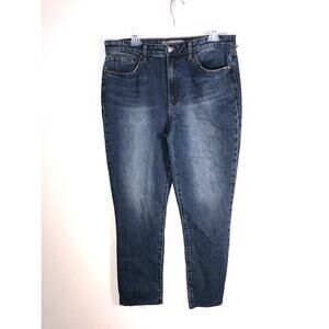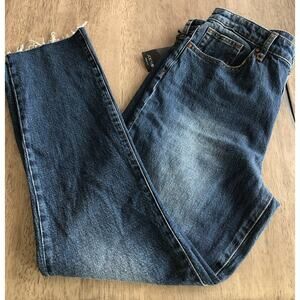 These are the perfect jeans they are casual and chic. The are a straight-leg ankle fit in a medium wash, with a high-rise. These are a 5-pocket construction, Pull-on style with a zipper and button closure. They feature a raw frayed hem at the ankle. New with tags.