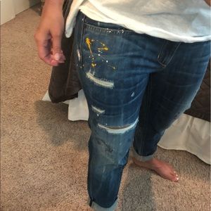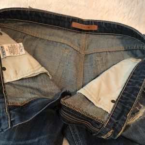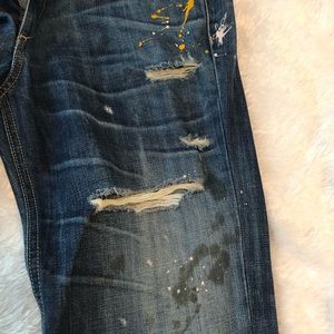 Very fun pair of Joe’s Jeans. Found them at Kitson in Beverly Hills. Worn once, in excellent condition. All the stains are the way I bought them. Pd $250 for them and got a lot of compliments when I wore them. They say size 26, but fit more like a 27, so I will list them as a 27.