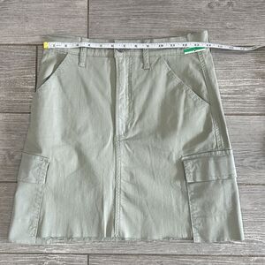 Brand new with tags! Cargo pockets hang over the raw hem of a utilitarian miniskirt constructed from stretch-cotton for a comfortable all-day fit.