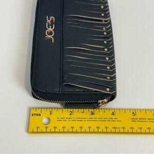 Joe’s Jeans Black Leather Fringe Zip Around Wallet Clutch