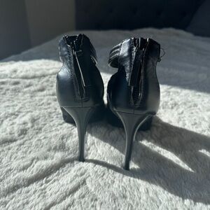 Joe's Jeans Black Peep Toe Heels Size 10 Leather & Suede Back Tassel Zipper