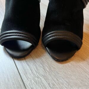 Joe's Jeans Black Peep Toe Heels Size 8.5 Leather & Suede Back Tassel Zipper
