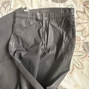 Only worn once. Has a shimmer to it- meant to look like black leather from afar, which it does, but the pants are not leather. Excellent condition!