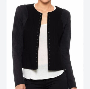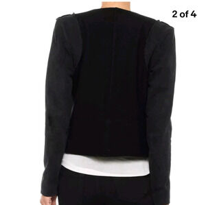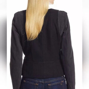 Joe’s Jeans Black Wool Cropped Fitted Hook & Eye Collarless Moto Jacket Large