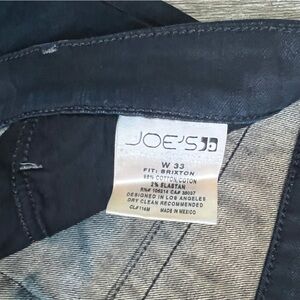 Pristine condition! Joe’s Jeans Brixton Dark Wash Denim Jeans with Patent Leather Pocket Detailing. Straight fit. Men’s Size W 33. Very dark blue. Inseam approximately 30” as shown.